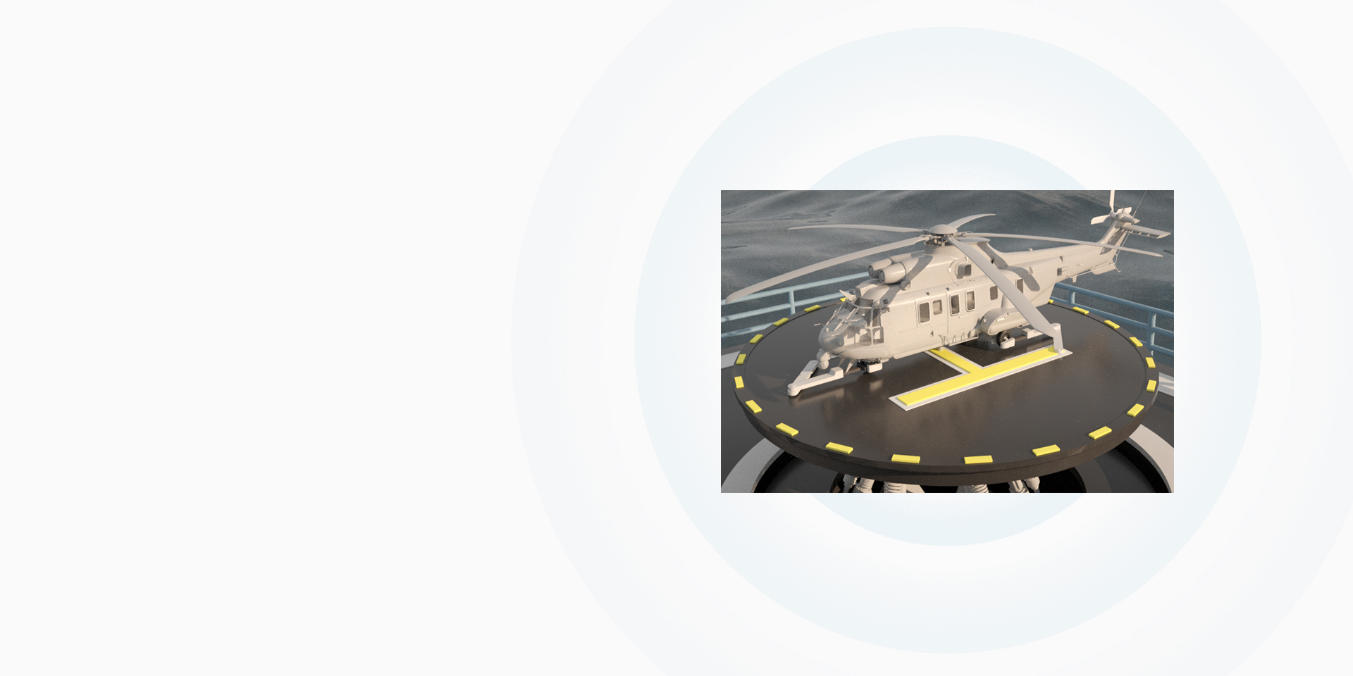 直升飞机起降平台具有高承载、高稳定性、动态智能感知能力,抵消船艇颠簸对直升机着舰的不利影响,让直升机在高海况下起降如履平地。